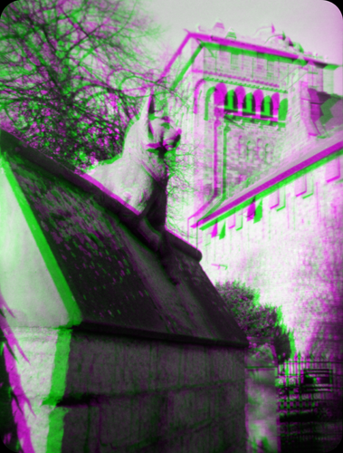 In the foreground is the end of the animal wall closest to the castle, which is comprised of 15 sculptures. This sculpture is of a lynx designed by William Burges and carved by Thomas Nicholls in the early 1890's and is one the original 9 animals, before a further 6 were added to the wall in 1931. Originally the wall was situated in front of Cardiff castle's entrance but was moved in the 1920's. In the background is the west side of the castle where the guest tower and castles apartments are located. The picture was taken shortly before the £5.6 million refurbishment of Bute Park and restoration of the animal wall.