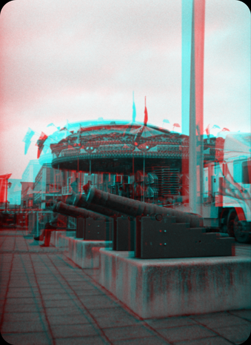 This picture was taken directly in front of the Pier-head building. The cannons look out directly onto the bay and Penarth. Just behind the cannons is a carousel which would be familiar site to most people who like in Cardiff, mainly spotted in Cardiff bay the carousel moves around to local events and occasions. Despite its looks the carousel started in 2008 but really manages to capture the magic of the old wooden carousels. On this particular day the carousel was being dismantled and taken away for maintenance hence the truck jus coming into the shot.